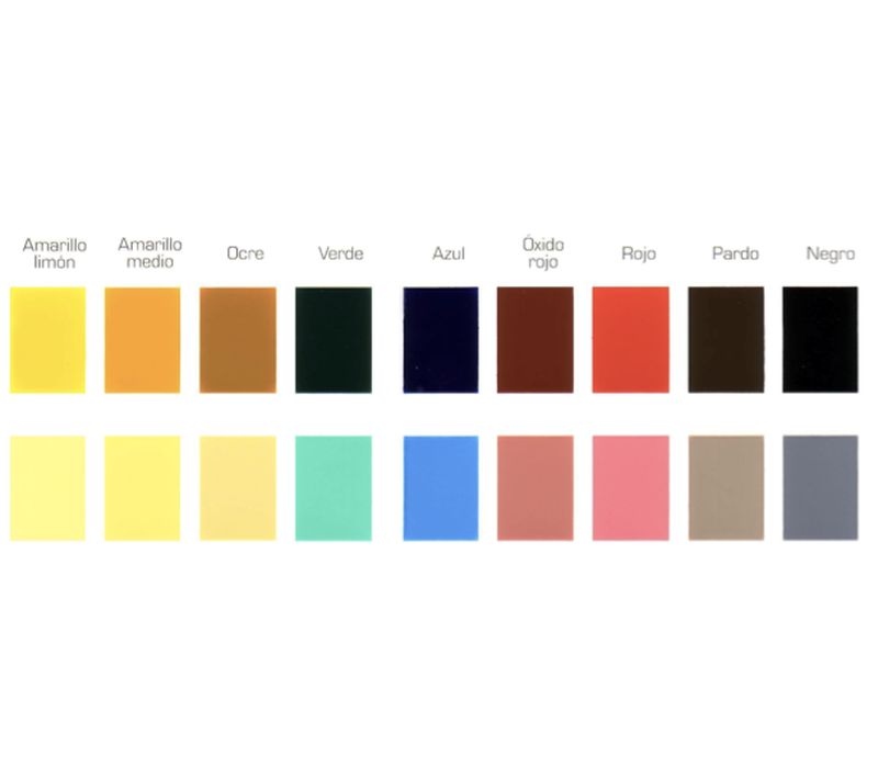 El colorante universal Jafep es compatible con la mayoría de pinturas al disolvente para la obtención de tonos pastel o intermedios de total solidez. En interior y exterior (negro, pardo y ocre) y solo en interior el resto de colores.